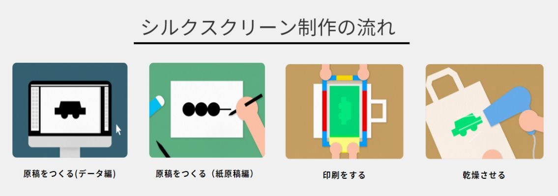 法人のロゴやイメージ画像(イラスト)を使用して、利用者さまと一緒にシルクスクリーン体験しませんか?他にはない「活動」をしながら、事業所のオリジナルグッズを製作出来ます。事業所をPRしながら、さらにファンを増やすお手伝いを致します。出張ワークショップも可能ですので、お問合せ下さい。