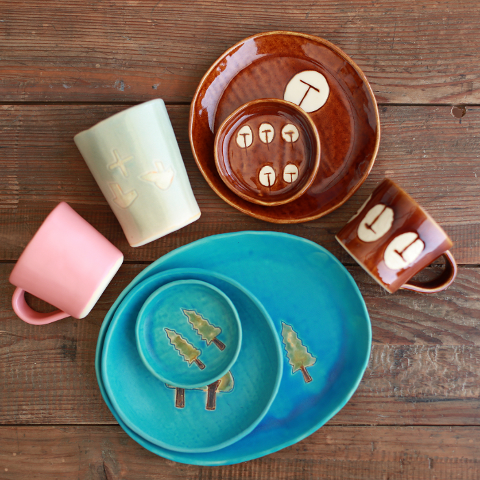 優しい色あい、ほんわりとした絵柄、素朴な手ざわり、そんな温もりを感じる器たちです。